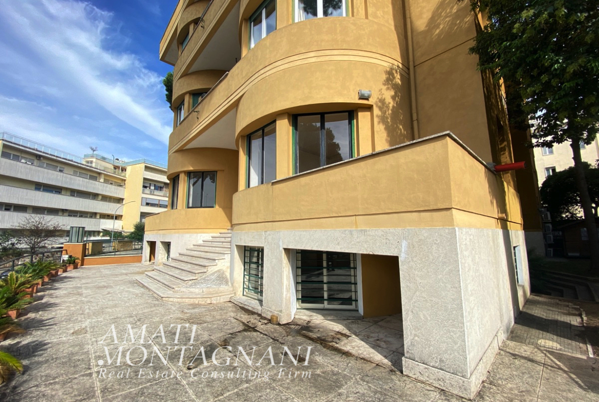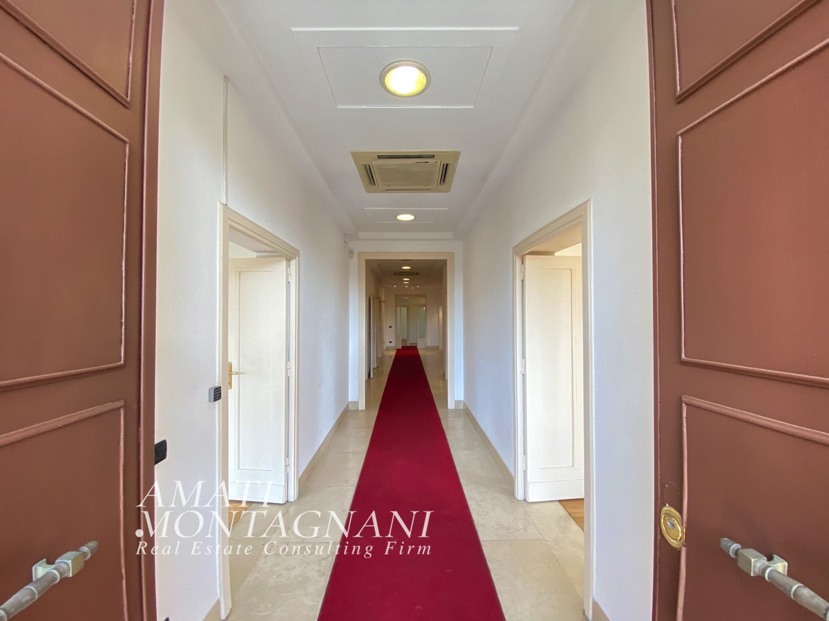 Nel cuore del quartiere Parioli, in Via Barnaba Oriani, AMATIMONTAGNANI propone in affitto un prestigioso ufficio con doppio ingresso – dallo stabile o dalla grande terrazza privata – composto da grande galleria centrale, 10 stanze oltre disimpegni e doppi servizi.
