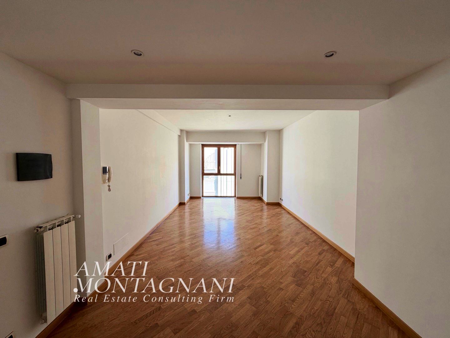 L’immobile, che si affitta per esclusivo uso residenziale con contratta 4+4, si compone di soggiorno ampio e assolato con cucina a vista da arredare, disimpegno notte, camera padronale assolata con balcone, seconda camera con balcone e affaccio in ampia corte interna e un bagno con doccia.
