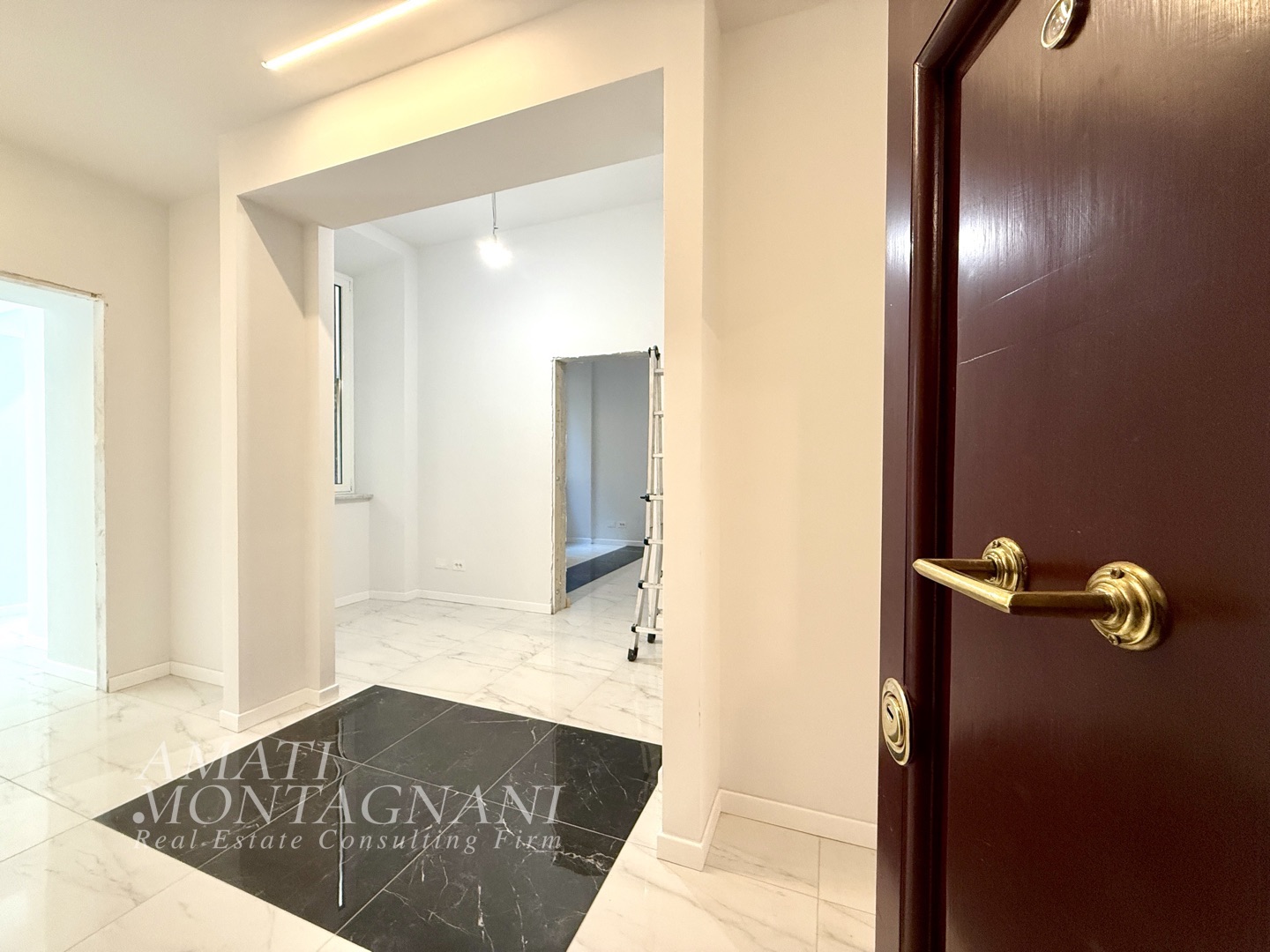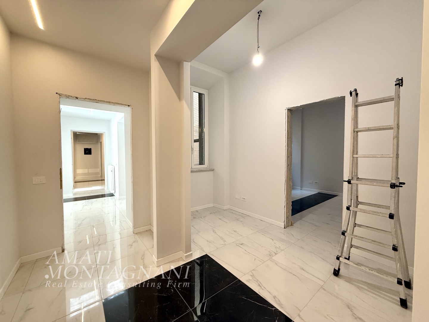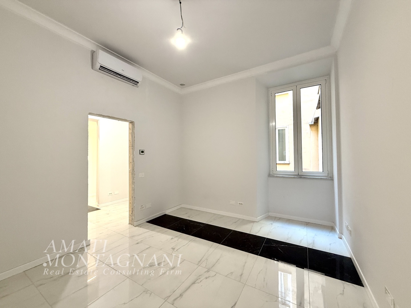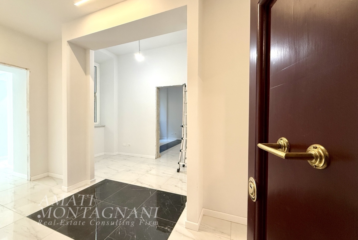 L’immobile é composto da doppio ingresso, reception sala d’attesa, ampia sala riunioni, 7 generose camere, un ripostiglio, disimpegni, 4 bagni di cui uno a norma disabili e un piccolo balcone in corte interna.